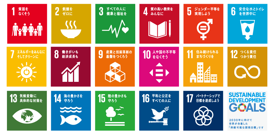 国連が定めた「持続可能な開発目標(Sustainable Development Goals)」の略称で、2030年までに、途上国・先進国関係なく達成しようという目標です。貧困や教育、エネルギー問題、消費やパートナーシップなど、世界中で抱える問題を17に分類し、その目標値を設定したものです。これまでのように途上国で貧困などに取り組むのではなく、先進国にも数値目標が設定されたということで、地球市民の会のようなNGOのみならず、企業も率先して「弊社は事業を通じてゴール○番を達成します!」などと取り組むようになりました。